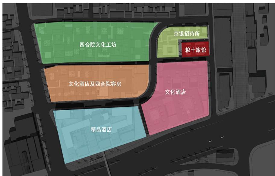 H地塊總體定位為文化旅游服務(wù)保障區(qū),以大柵欄地域的歷史、文化、旅游為基礎(chǔ),依托大柵欄地區(qū)豐富的旅游資源,建立多層次酒店群,開發(fā)中高級特色酒店。
