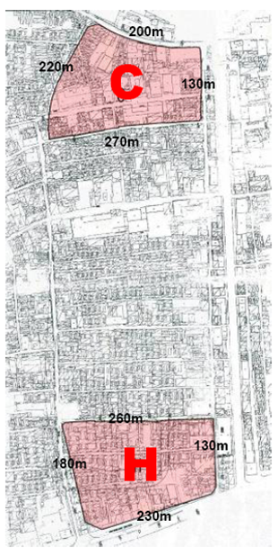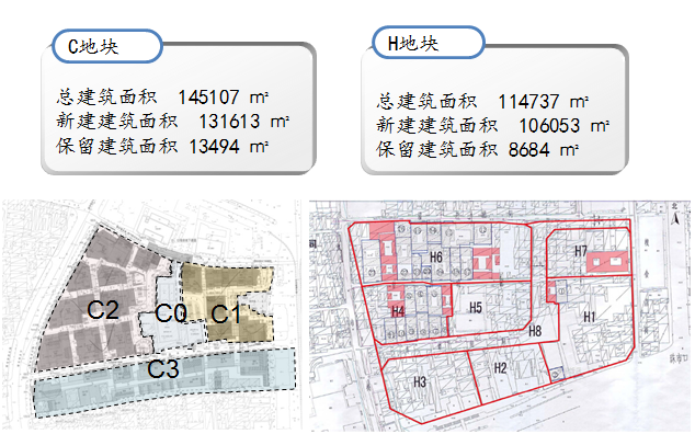 項(xiàng)目由C、H兩個(gè)地塊組成,東至珠寶市糧食店街,西至煤市街,項(xiàng)目通過一二級聯(lián)動(dòng)方式實(shí)施改造。