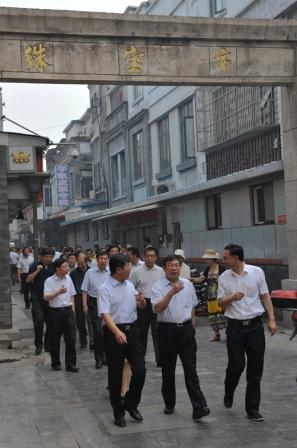 6月27日上午,北京市人大常委會主任杜德印同志來到大柵欄投資公司和大柵欄永興置業(yè)公司的“大柵欄·北京坊”、勸業(yè)場、珠寶市糧食店街、楊梅竹斜街等項目視察,隨后聽取了推進大柵欄琉璃廠地區(qū)保護復(fù)興市人大代表建議辦理工作情況的匯報。市發(fā)改委主任張建東、西城區(qū)領(lǐng)導(dǎo)王寧、王少峰、蘇東、王旭、李巖等同志以及大柵欄琉璃廠建設(shè)指揮部、大柵欄街道和廣安控股主要領(lǐng)導(dǎo)陪同視察。