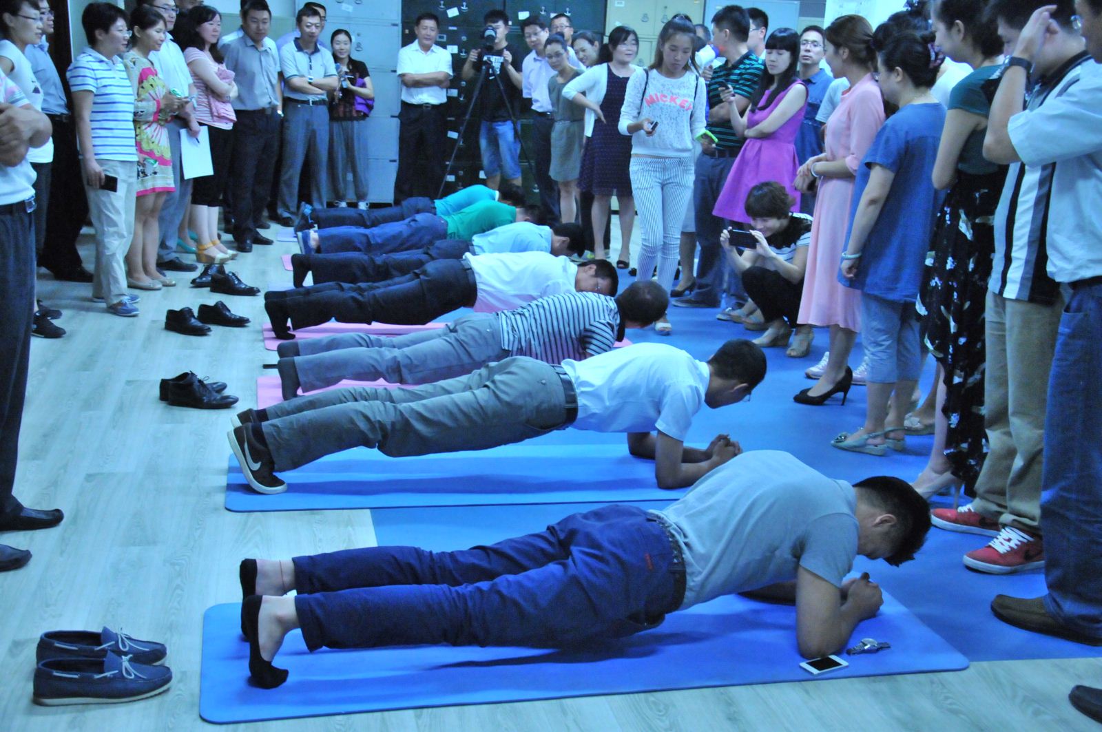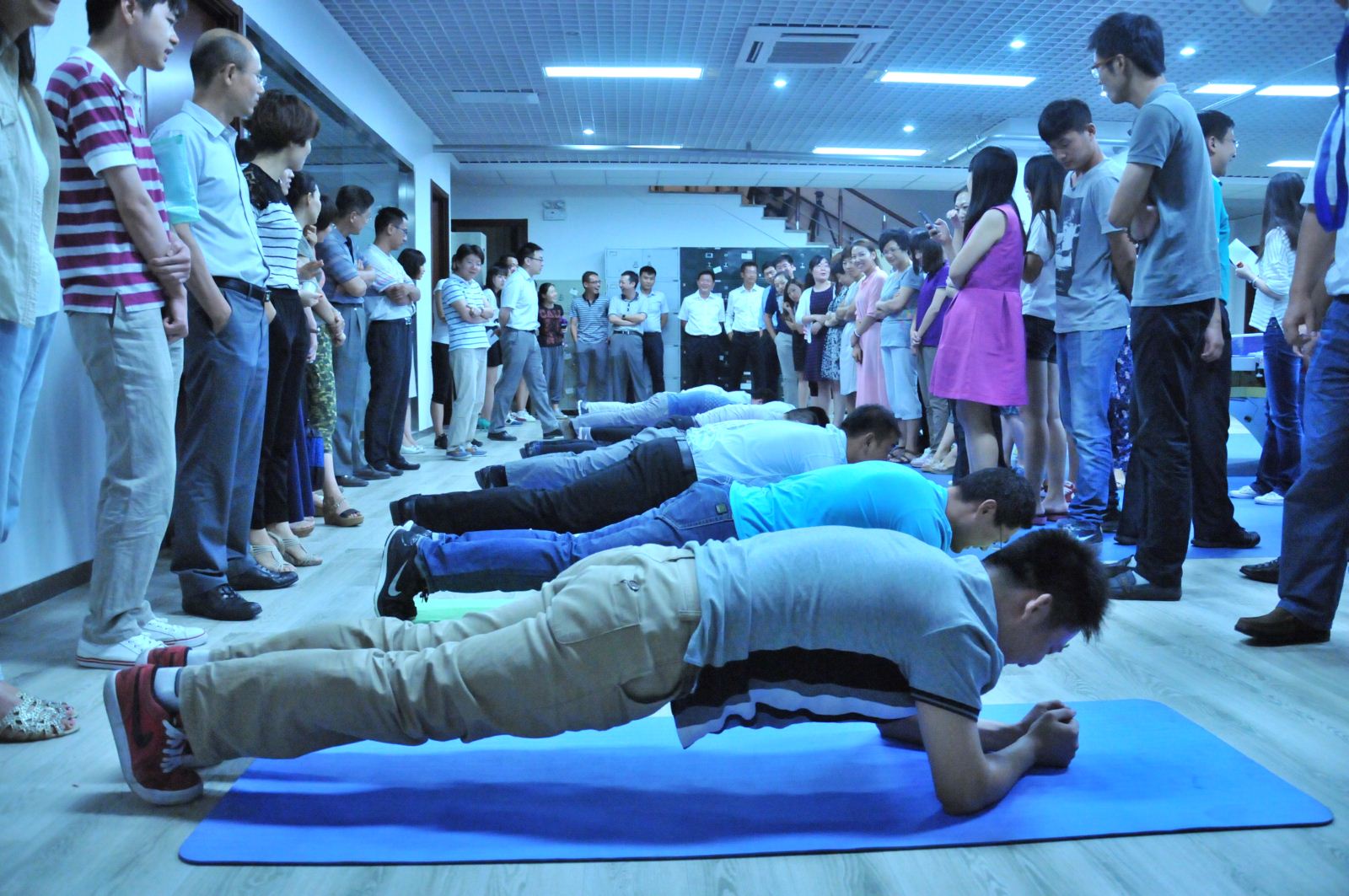 2014年8月廣安置業(yè)利用午休時間舉行了PLANK平板大賽。經(jīng)過7、8兩日的淘汰賽,堅持時間在2分30秒以上的員工有35人。 12日中午經(jīng)過四輪決賽評出了兩位平板王:朱蘭新(12分鐘)、馬春紅(女)(9分鐘)。 獲得男子組前五名的是: 獲得女子組前五名的是: 朱蘭新 馬春紅 王震宇 劉雅凰 高 偉 賀東妮 王 萌 李 潔 王 飛 王春梅