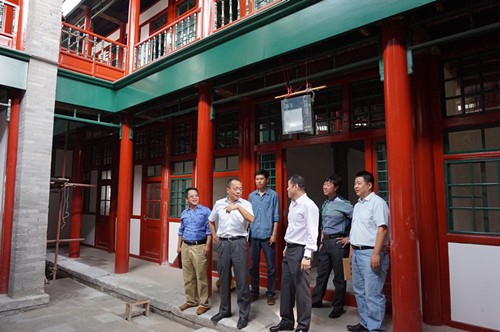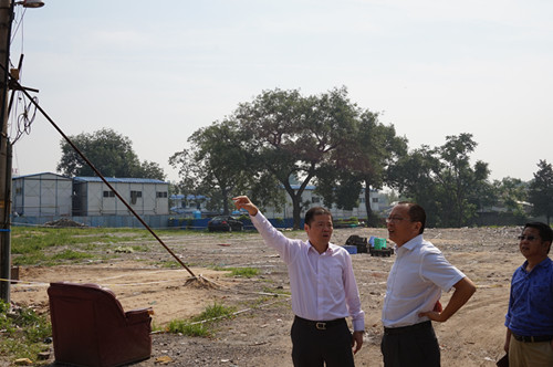 2015年9月14號,北京市國土資源局西城分局局長李偉、副局長黃東華、土地整理儲備中心主任王東等領導到大柵欄C3、H地塊及糧十旅館修繕現(xiàn)場調研指導工作。