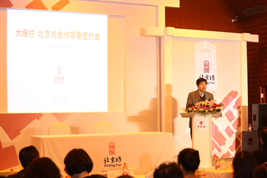 2015年11月16日,大柵欄•北京坊合作項目簽約會在北京勸業(yè)場文化藝術(shù)中心隆重舉行。 大柵欄•北京坊歷經(jīng)10年開發(fā)和蓄勢,終于迎來主力商戶簽約,為明年順利開業(yè)奠定良好基礎(chǔ)。大柵欄•北京坊位于天安廣場西南,地理位置非常重要,在北京非首都功能疏解、大柵欄區(qū)域改造的歷史機(jī)遇面前,既有挑戰(zhàn)、也有壓力。項目定位于北京文化地標(biāo)、中國式生活方式體驗區(qū),這個定位得到市場上廣大商戶的強(qiáng)烈響應(yīng)。 此次簽約活動,保利影業(yè)投資有限公司總經(jīng)理柳德彬、央視動畫有限公司副總經(jīng)理李小健、PAGEONE創(chuàng)始人/董事長陳家強(qiáng)、日本UDS株式會社會長梶原文生、周氏兄弟中國唯一合作伙伴-廣西中大股份有限公司董事長鄔文康、得意典藏副董事長李作羣出席了簽約活動,同時英園、意大利生活中心、雅昌文化、洛可可、尤倫斯等70余家意向商戶代表,及世邦魏理仕、仲量聯(lián)行、戴德梁行、高力國際、京威、睿意德、第一太平等商業(yè)合作伙伴的嘉賓100余人均出席此次簽約會。 同時此次簽約會,也得到西城區(qū)政府大力重視和支持。區(qū)委常委/區(qū)委辦主任孫碩、副區(qū)長李巖發(fā)表精彩致辭并對北京坊未來寄予良好期待。大柵欄街道辦主任王志忠、西城區(qū)各委辦局、廣安控股、大柵欄投資及永興置業(yè)公司20余位領(lǐng)導(dǎo)均蒞臨現(xiàn)場。 活動最后,區(qū)委常委/區(qū)委辦主任孫碩、副區(qū)長李巖、大柵欄街道主任王志忠、6位簽約商家代表及公司領(lǐng)導(dǎo)共同啟動水晶球,預(yù)示大柵欄•北京坊全面啟幕。 領(lǐng)導(dǎo)寄語