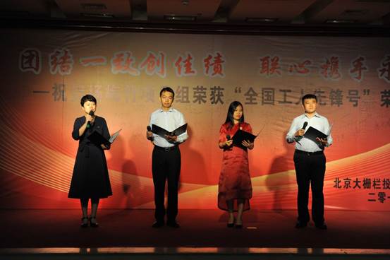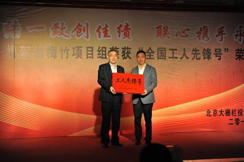 2016年10月20日,北京大柵欄投資有限責任公司楊梅竹項目組榮獲中華全國總工會頒發(fā)的“全國工人先鋒號”榮譽稱號的全員會議成功舉行。北京廣安控股有限公司領(lǐng)導(dǎo)班子以及北京大柵欄投資有限責任公司及下屬子公司全體員工參加了會議。